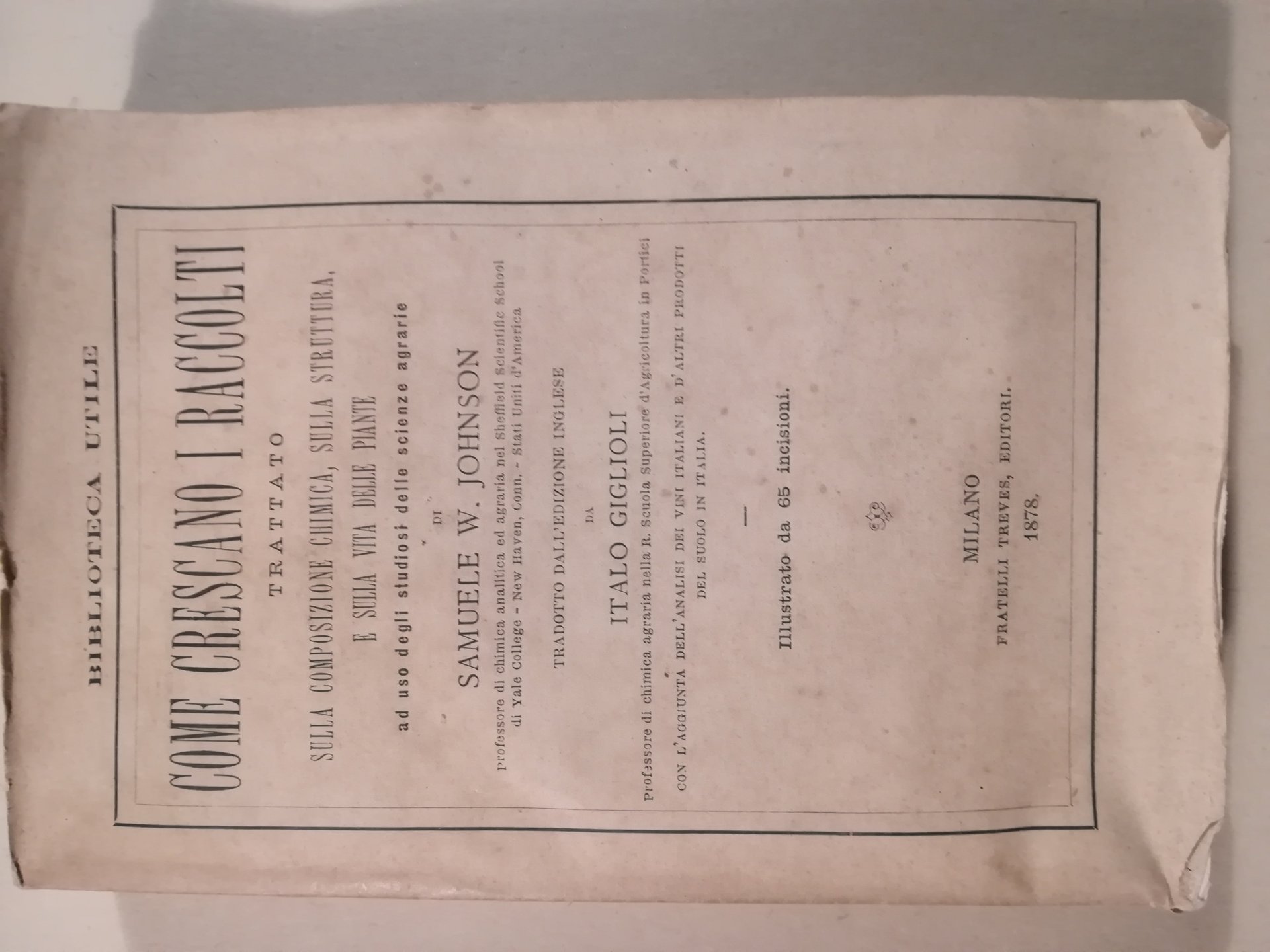 Come crescano i raccolti. Trattato sulla composizione chimica, sulla struttura e sulla vita delle piante [...]. Tradotto dall'edizione inglese da Italo Giglioli | Libri antichi e moderni | JOHNSON, Samuele