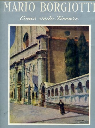 In-4°, pp. IX + 25 ff. + (4) pp., tela editoriale con sovraccoperta figurata a colori. 30 tavv. a colori applicate n.t. e f.t. riproducenti dipinti di Borgiotti con suggestive vedute fiorentine. Segni d'uso alla sovraccoperta, ma bell'esemplare. Unica edizione, impressa in 480 copie numerate (n° 76), più 20 in tiratura di lusso.