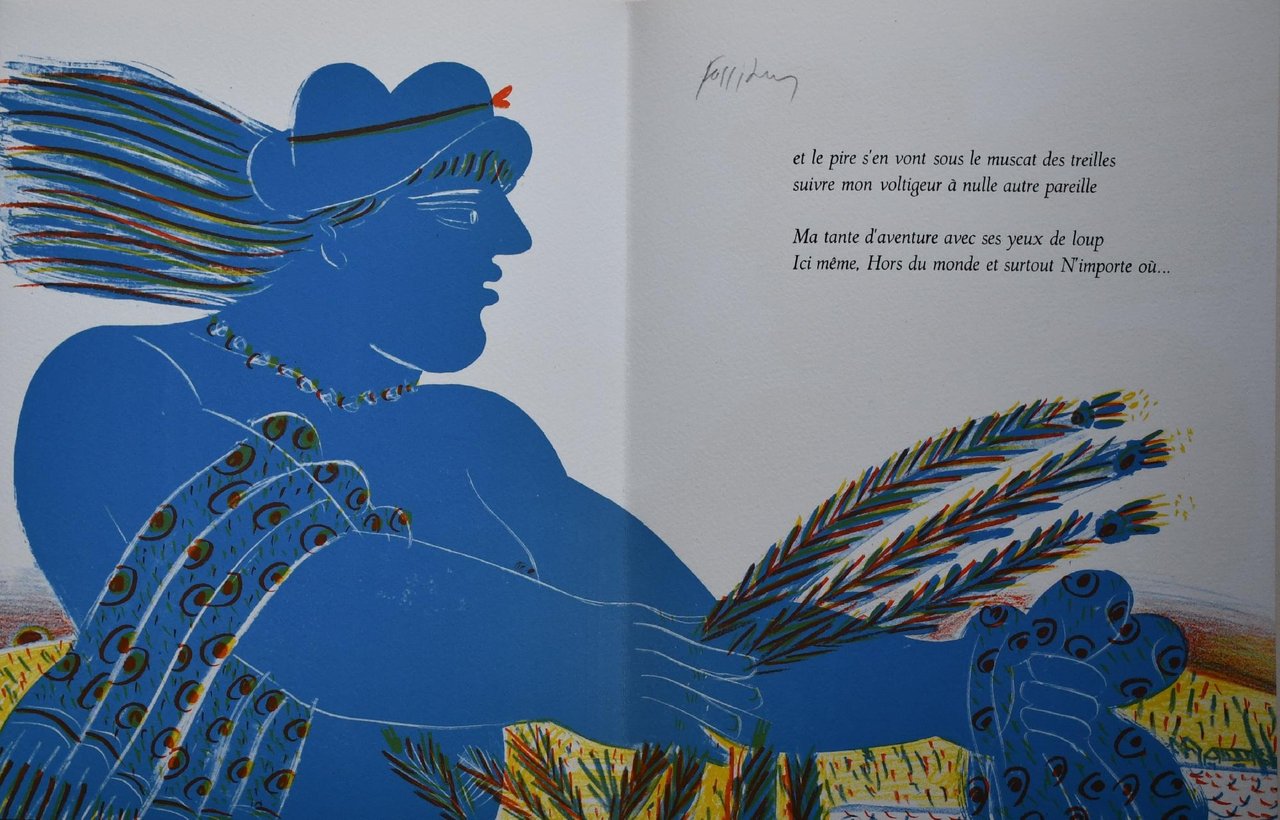Poema inedito di Seghers accompagnato da 7 litografie originali a colori firmate a matita di Alexandre Fassianos a piena e doppia pagina (cm 32,5x25 e cm 32,5x50). Postfazione di Anke Kerlo Le lito sono state tirate da M. Cassé. Stampa tipografica di P. J. Mathan a Boulogne-sur-Seine. Cm 34x26. pp. 36 in quartini sciolti. . Ottimo (Fine). . Prima edizione di 120+10 f.c. es. numerati. .
