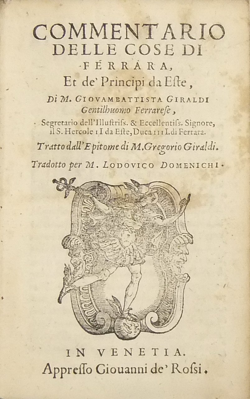 Commentario delle cose di Ferrara, et de' Principi da Este. Tratto dall'Epitome di M. Gregorio Giraldi. Tradotto per M. Lodovico Domenichi