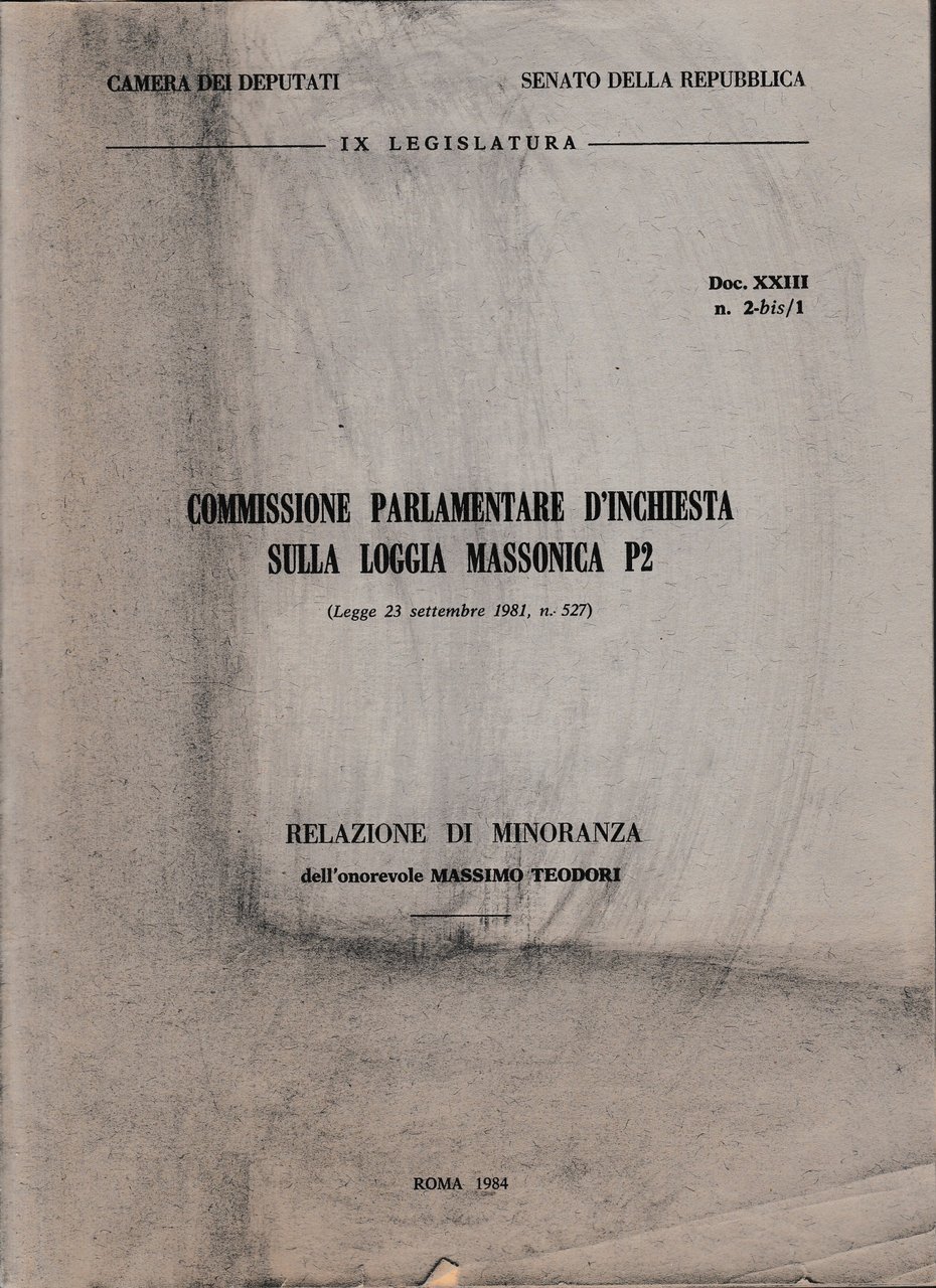 Commissione Parlamentare d'Inchiesta sulla Loggia Massonica P2 ( Legge 23 Settembre 1981, N. 527 ) | Libri antichi e moderni | Teodori Massimo ( Relazione di Minoranza ), ,Teodori Massimo ( Relazione di Minoranza )