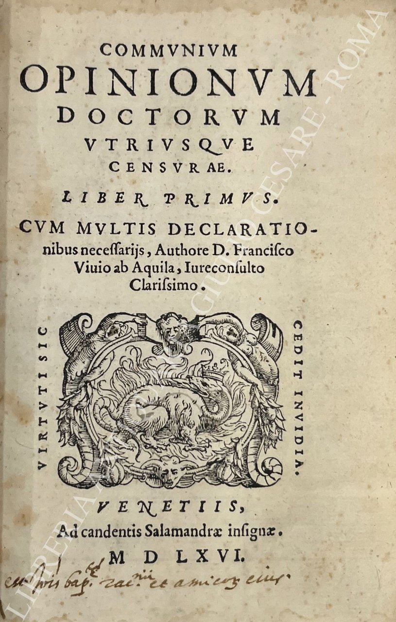Communium opinionum doctorum utriusque censurae. Liber primus. Cum multis declarationus necessarijs. ad Aquila | Libri antichi e moderni | Vivio Francesco - Viuio Francisco