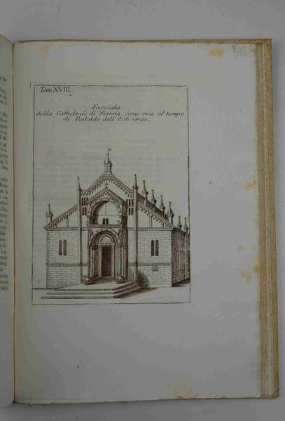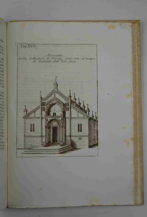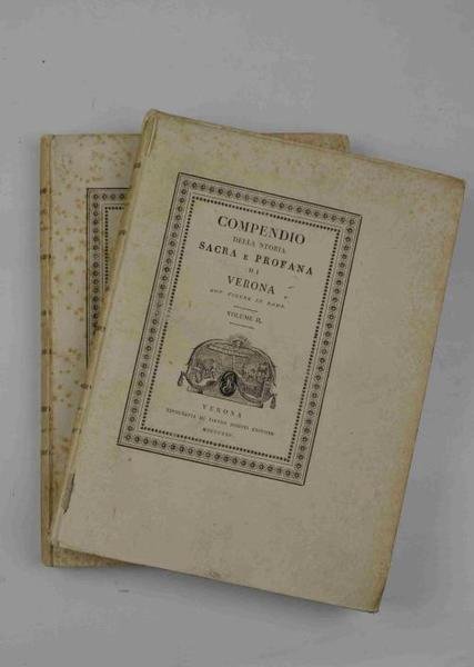 Due volumi di cm. 27, pp. xx, 200; vii, 238. Con vignetta a ciascun frontespizio e 41 incisioni perlopiù su tavole fuori testo anche ripiegate. Legatura editoriale in cart. rigido con decorazioni e titoli impressi. Minime fioriture esterne, ma esemplare assai fresco e marginoso, in ottimo stato di conservazione. Seconda edizione aumentata rispetto alla prima del 1820 di questa celebre opera storica sulla città di Verona.