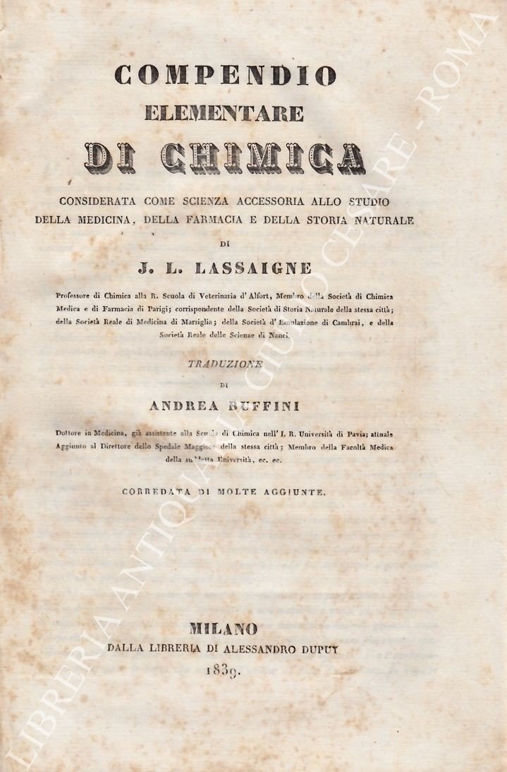 Compendio elementare di chimica considerata come scienza accessoria allo studio della medicina, della farmacia e della storia naturale | Libri antichi e moderni | Lassaigne J.L.