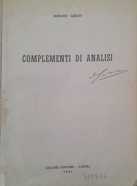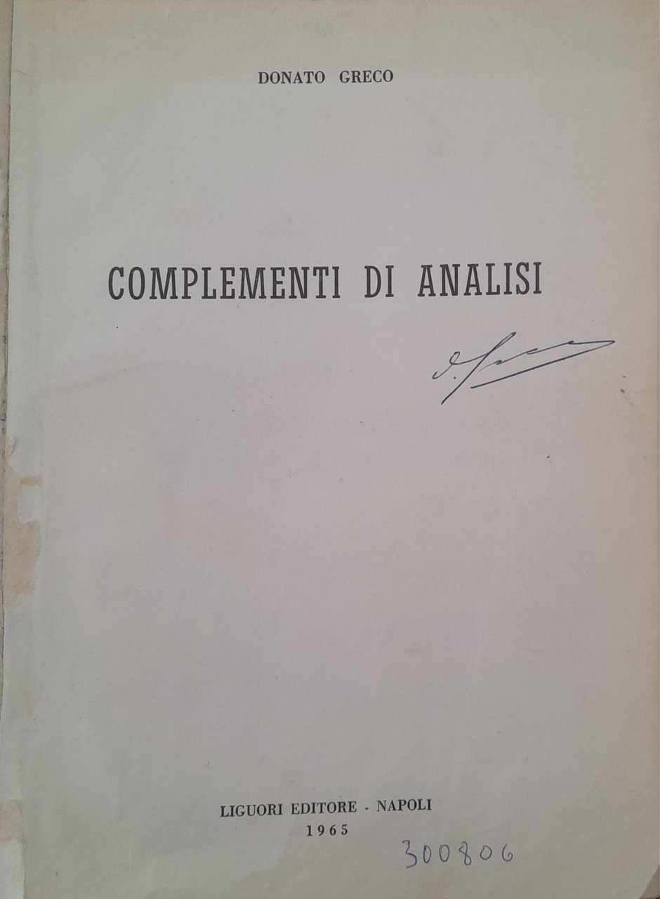 Complementi di analisi | Libri antichi e moderni | Donato Greco, ,Donato Greco