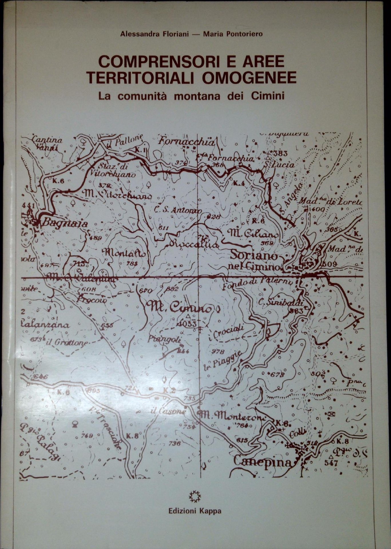 Floriani, Alessandra; Pontoriero, Maria Comprensori e aree territoriali omogenee : la Comunità montana dei Cimini. Roma, Kappa 1979, 15 c., 7 c. di tav. : ill. ; 30 cm. (42271)