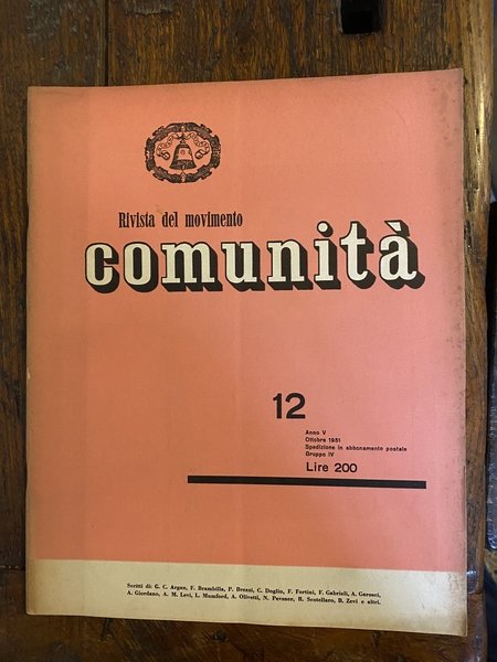 Comunità Rivista bimestrale del movimento Anno V Numero 12 Ottobre 1951 | Libri antichi e moderni | Olivetti Adriano, Diretta Da