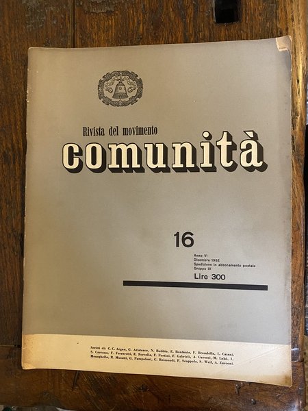 Comunità Rivista bimestrale del movimento Anno VI Numero 16 Dicembre 1952 | Libri antichi e moderni | Olivetti Adriano, Diretta Da