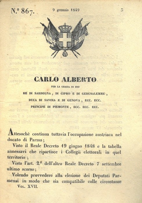 con cui si decide la data per la convocazione dei collegi elettorali di Parma. | Libri antichi e moderni | Regio Decreto