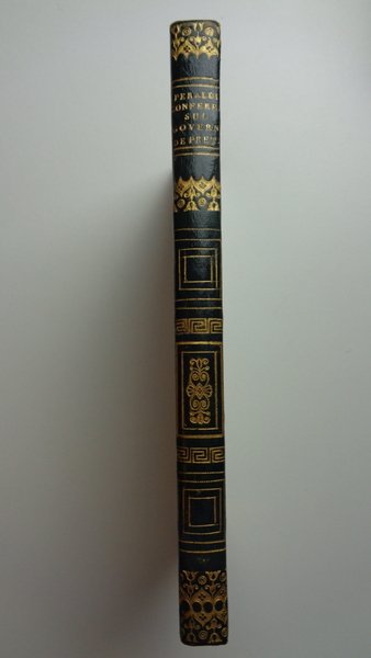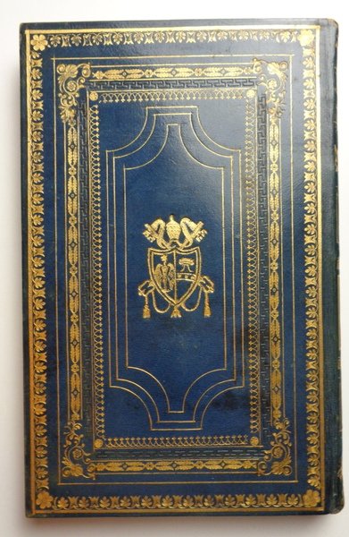 Un volume (13,5x22 cm) di XII-225 pagine. Minime fioriture; taglio restaurato all'angolo della pagina di titolo per asportazione di vecchio timbro. Bella legatura in tutta pelle verde, piatti inquadrati da quattro diverse cornici dorate con fregi e angoli floreali, stemma papale di GREGORIO XVI al centro; dorso liscio ornato e dorato, risguardie con carta setata e cornice rosa; tagli dorati. Ottime condizioni. Il Peraldi illustra tutte le ragioni per le quali un governo ecclesiastico sia non solo legittimo ed auspicabile, ma anche assai migliore rispetto a quello laico per il bene dei cittadini e per l'economia della nazione. Esposto alla Mostra La rilegatura d'arte antica pontificia (Museo civico di Albano, 1988).