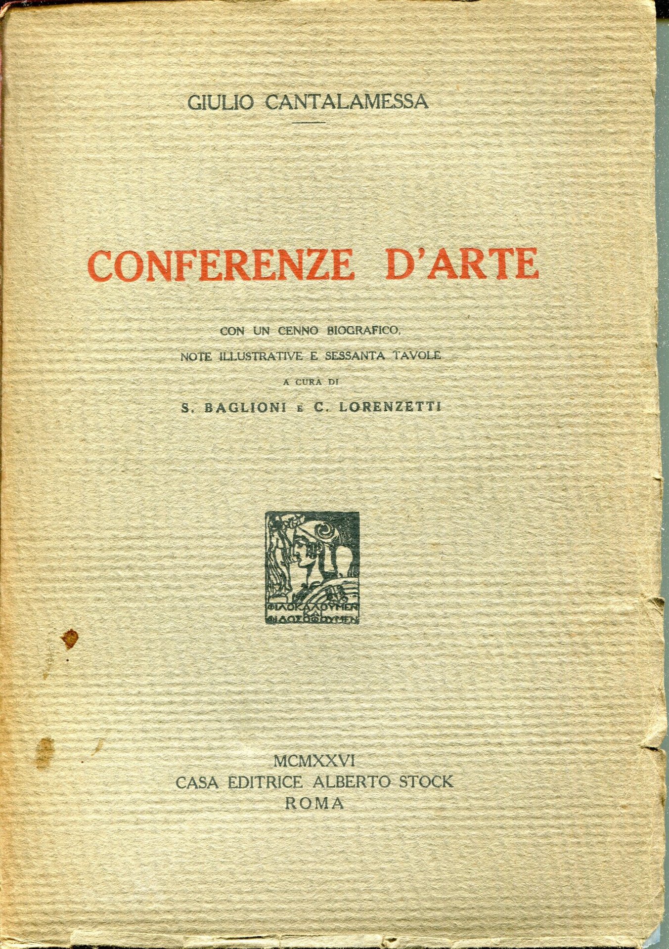 Conferenze d'arte, con un cenno biografico, note illustrative e sessanta tavole a cura di S. Baglioni e C. Lorenzetti | Libri antichi e moderni | Cantalamessa, Giulio, ,Cantalamessa, Giulio