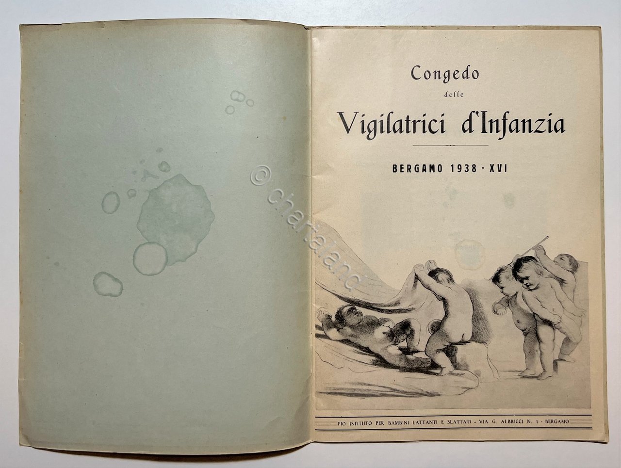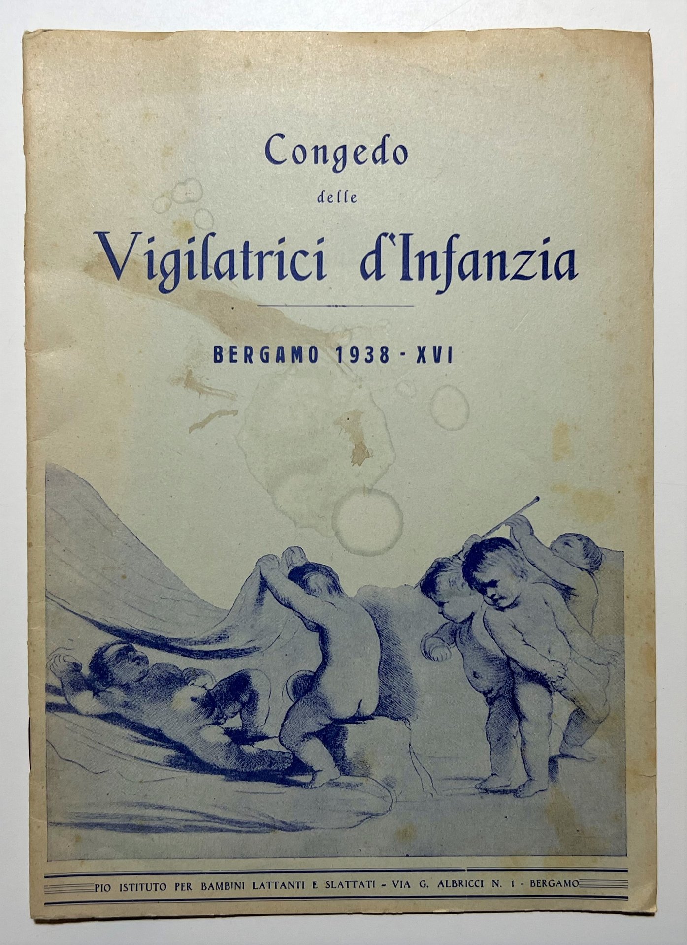 Congedo delle Vigilatrici d'Infanzia - Bergamo 1938 Testo in lingua italiana. Pagine 31 con illustrazioni. Copertina morbida. Condizioni molto buone con piccoli segni del tempo.