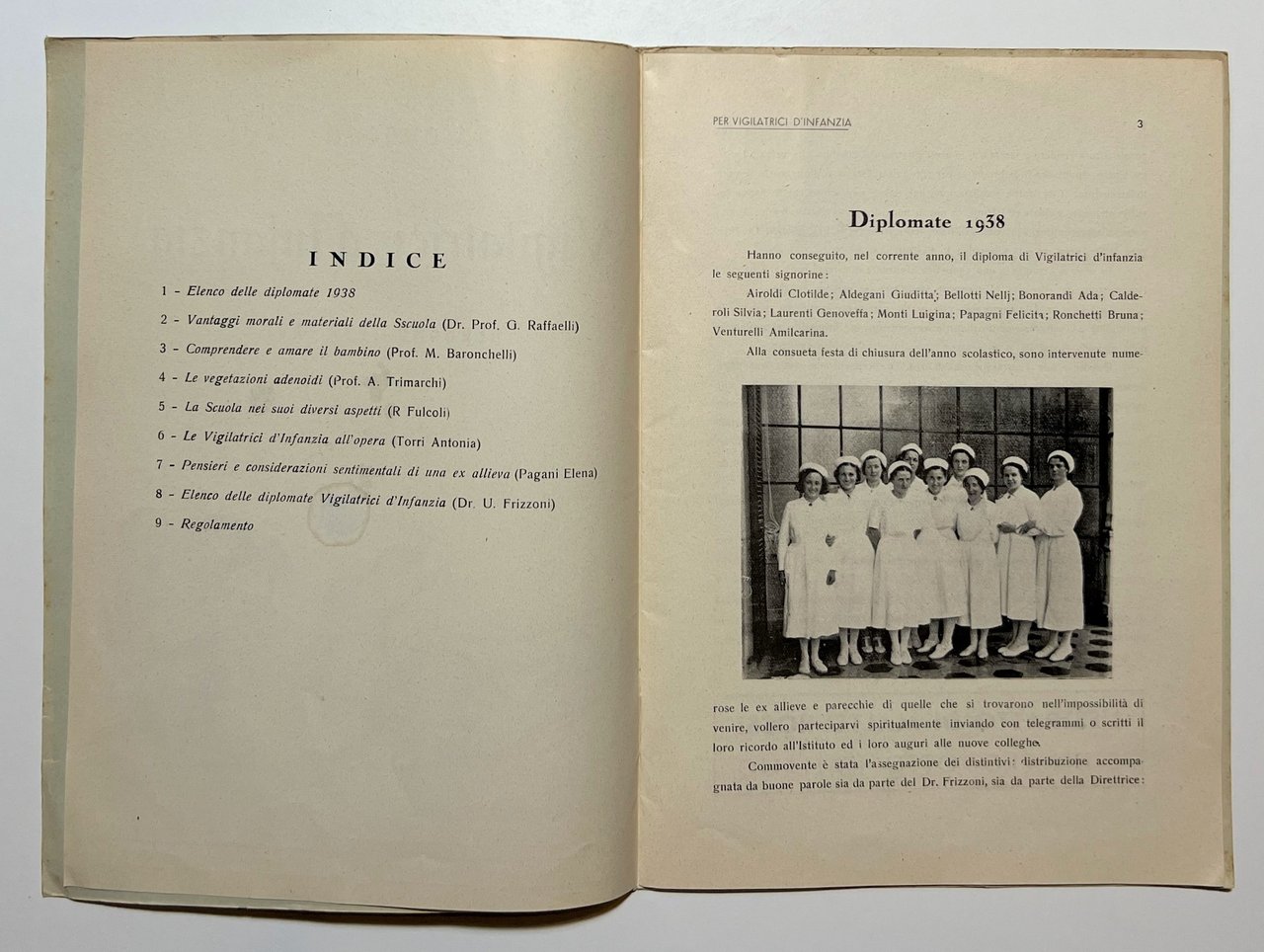 Congedo delle Vigilatrici d'Infanzia - Bergamo 1938 RARO