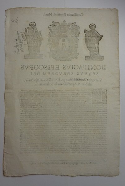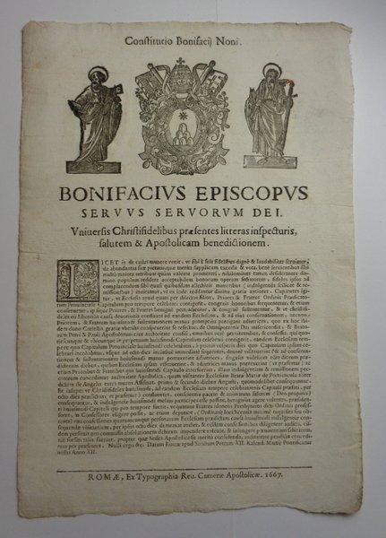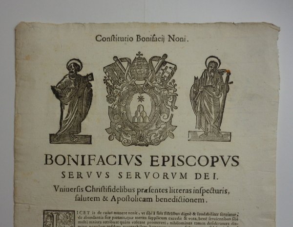 CONSTITUTIO BONIFACII NONI. Universis Christifidelibus praesentes litteras inspecturis. | Libri antichi e moderni | (Bonifacius Ix)