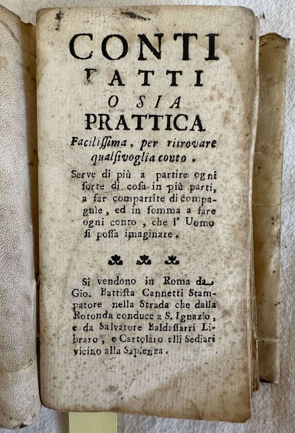 CONTI FATTI O SIA PRATTICA FACILISSIMA PER RITROVARE QUALSIVOGLIA CONTO SERVE DI PIU A PARTIRE OGNI SORTE DI COSA IN PIU PARTI A FAR COMPARTITE ED IN SOMMA A FARE OGNI CONTO CHE L'UOMO SI POSSA IMAGINARE | Libri antichi e moderni |