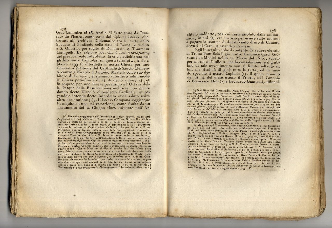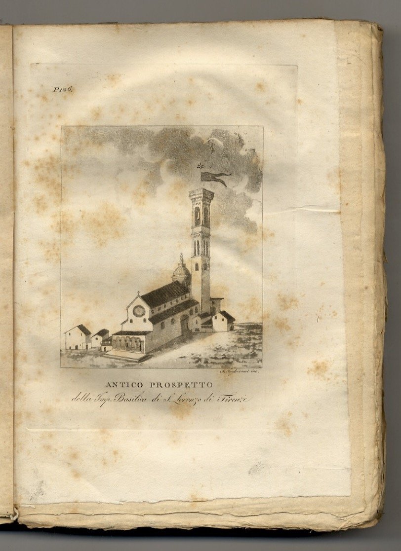 Firenze, presso Francesco Daddi in Borgo Ognissanti, 1816-1817, voll. 2, in-4, brossura originale "d'attesa" in carta celeste, titolo manoscritto su tasselli di carta ai dorsi, pp. XVI, 360 - XII, 567, [1]. Con una tavola incisa in rame nel secondo volume raffigurante l'antico prospetto della basilica (lievi fioriture). Continuazione delle "Memorie istoriche dell'Ambrosiana R. Basilica di S. Lorenzo di Firenze" di Pier Nolasco Cianfrogni, pubblicate a Firenze nel 1804. Esemplare a pieni margini e in gran parte intonso.