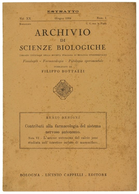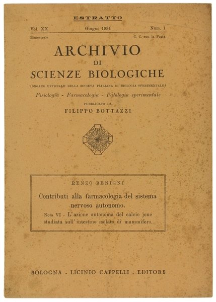 CONTRIBUTI ALLA FARMACOLOGIA DEL SISTEMA NERVOSO AUTONOMO. Nota VI. | Libri antichi e moderni | Benigni Renzo.