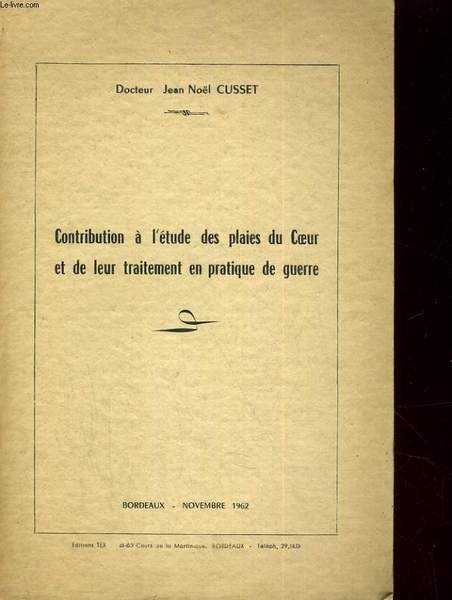 Contribution à l'étude des plaies du coeur et de leur traitement en pratique de guerre | Libri antichi e moderni | Cusset Jean Noël
