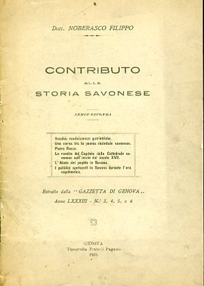 Contributo alla storia savonese. Serie seconda. Estratto dalla 'Gazzetta di Genova', anno LXXXIII, n. 3, 4, 5, e 6 | Libri antichi e moderni | Noberasco Filippo