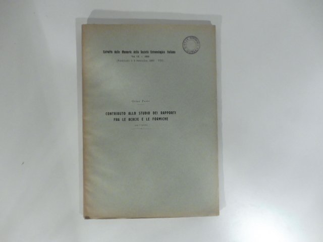 Contributo allo studio dei rapporti fra le acacie e le formiche (con 7 tavole) | Libri antichi e moderni | Paoli Guido