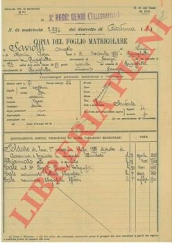 Copia del foglio matricolare. | Libri antichi e moderni |