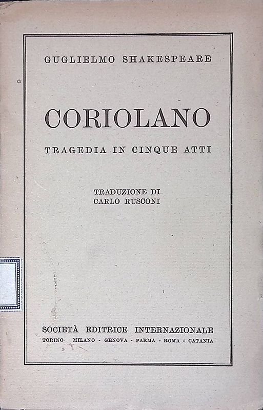 Coriolano. Tragedia in cinque atti | Libri antichi e moderni | Shakespeare