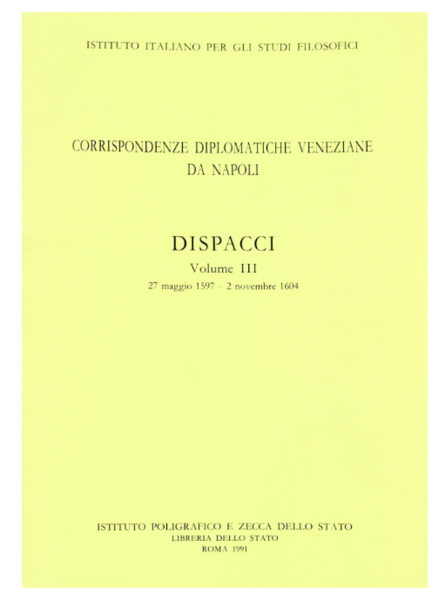 Corrispondenze diplomatiche veneziane da Napoli. Dispacci vol.III: 27 maggio 1597-2 novembre 1604: 3 | Libri antichi e moderni |