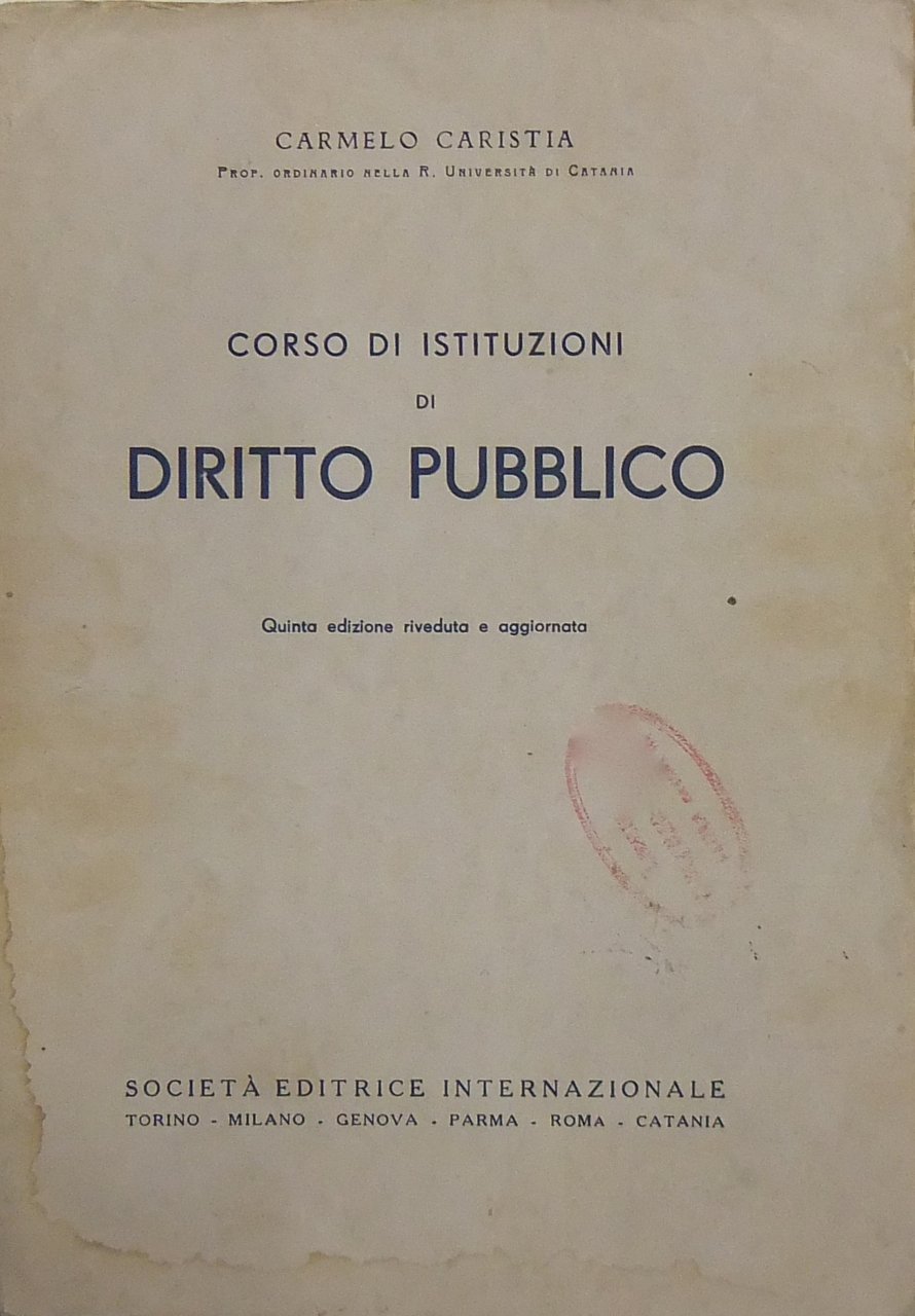 Corso di Istituzioni di diritto pubblico | Libri antichi e moderni | Caristia Carmelo (1881-1969)