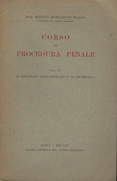 CORSO DI PROCEDURA PENALE. Vol. II - Il processo amministrativo di sicurezza | Libri antichi e moderni | ENRICO ROMANO DI FALCO, ,ENRICO ROMANO DI FALCO