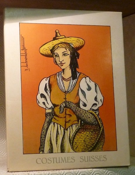 Costumes suisses. Recueil de 24 lithographies en couleurs et une feuille de présentation sur laquelle l’artiste a réalisé un dessin original.