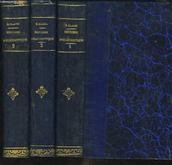 1882. In-12. Relié demi-cuir. Etat d'usage, Couv. légèrement passée, Dos satisfaisant, Intérieur frais. 639 + 647 + 591 pages. Dos de cuir bleu, titres, fleuron, roulette et filets dorés, papier bleu et noir sur les plats. . . . Classification Dewey : 270-Histoire et géographie de l'Eglise