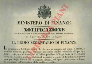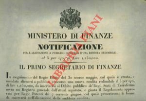 Creazione di una nuova rendita redimibile al 5 per cento di lire 1.250.000 da inscriversi al Debito Pubblico. | Libri antichi e moderni |