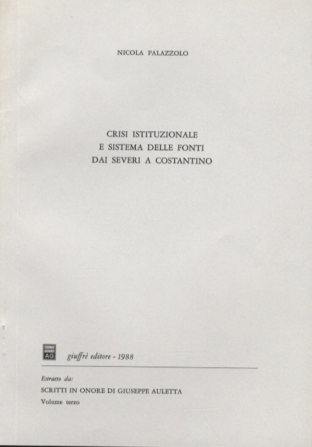 Crisi istituzionale e sistema delle fonti dai Severi a Costantino. | Libri antichi e moderni | Palazzolo Nicola.