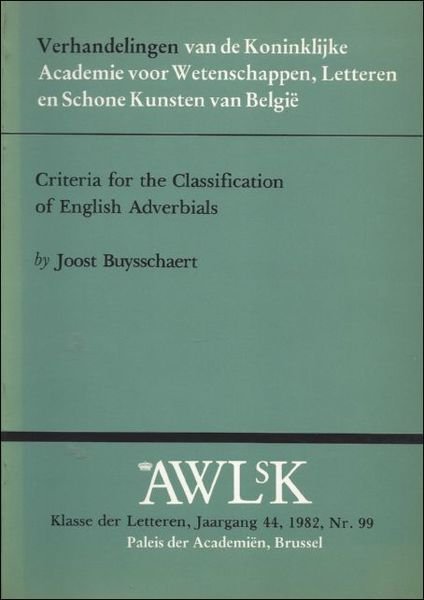 CRITERIA FOR THE CLASSIFICATION OF ENGLISH ADVERBIALS. | Libri antichi e moderni | Buysschaert Joost.