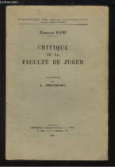 Critique de la Faculté de Juger. | Libri antichi e moderni | Kant Emmanuel