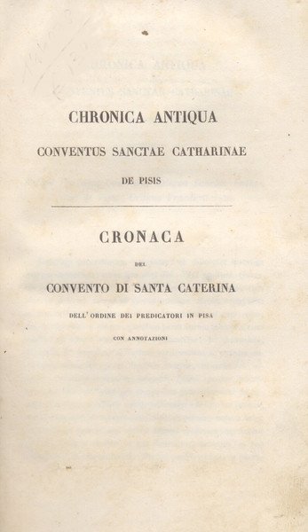 CRONACA DEL CONVENTO DI SANTA CATERINA DELL'ORDINE DEI PREDICATORI IN PISA. Con annotazioni. ("Chronica antiqua conventus Sanctae Catharinae de Pisis"). | Libri antichi e moderni |