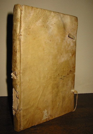 8vo (cm. 19,8), 62 cc.nn. con 239 ritratti dei Papi in xilografia. Testo su due colonne entro cornice tipografica. Vignetta al frontespizio raffigurante Gesù con San Pietro e sullo sfondo la Basilica Vaticana. Legatura d’origine in pergamena floscia (qualche lieve macchia, una mancanza al ds. e tracce di bindelle). Interni in ottimo stato di conservazione. Edizione molto rara di questa storia cronologica dei Pontefici e degli avvenimenti più rilevanti dai tempi di Gesù fino al 1614. In Br. Libr. (p. 289) un’edizione del 1616.