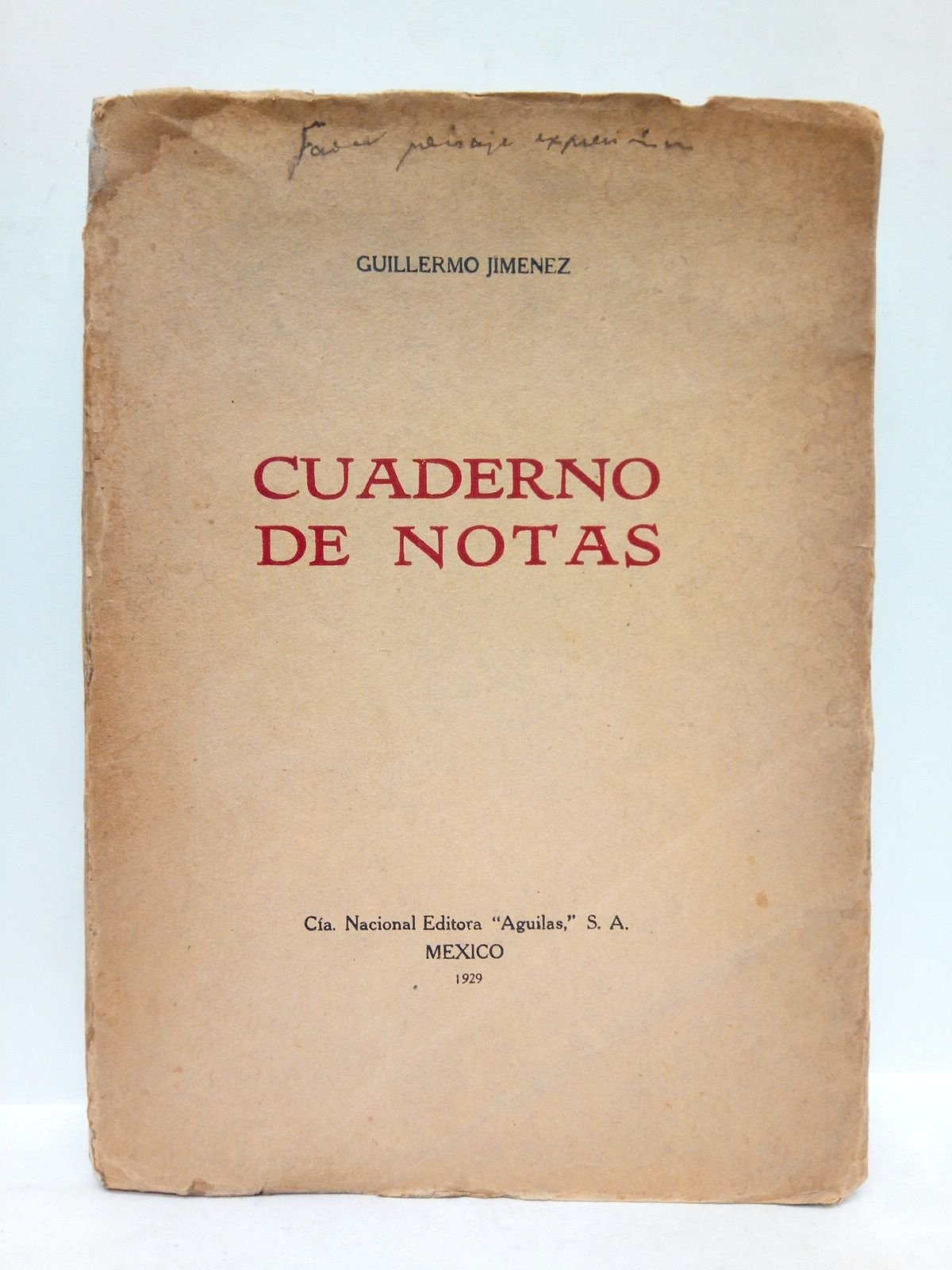 [PRIMERA EDICION].- México: Cía. Nacional Editora "Aguilas", S. A., 1929.- 154 p., [2 h.]; 4º (23,9 x 17,3 cm); Portada a dos tintas; Cartulina Ed. con solapas.- RARO.* Lomo con algunas faltas en cabeza. Las cubiertas un poco ajadas, la tapa anterior con pequeños signos de humedad, especialmente una mancha en la esquina superior, junto al lomo. El interior perfecto. LITERATURA, ESTUDIOS LITERARIOS, FILOSOFÍA Y PENSAMIENTO IBEROAMERICANO EN GENERAL