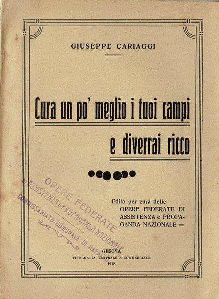 Cura un po meglio i tuoi campi e diverrai ricco | Libri antichi e moderni | Giuseppe Cariaggi