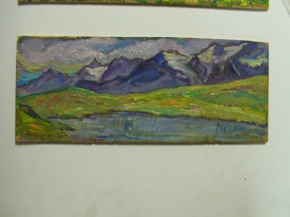 Olio su tavoletta cm. 14 X 34 circa.
