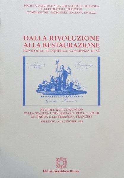 Dalla Rivoluzione alla restaurazione: ideologia, eloquenza, coscienza di sé: atti del XVII Convegno della Società universitaria per gli studi di lingua e letteratura francese: Sorrento, 26-28 ottobre 1989.