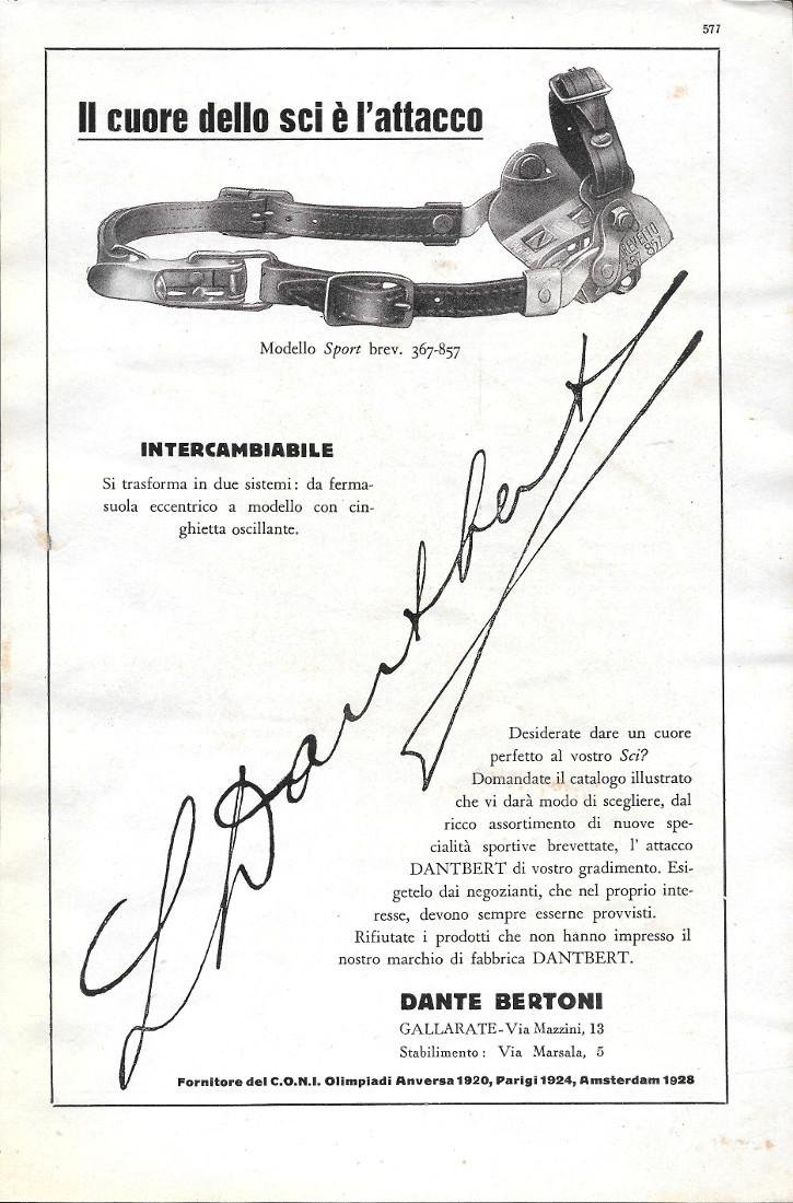 Dantbert. Il cuore dello sci è l'attacco. Ditta Dante Bertoni. Advertising 1930
