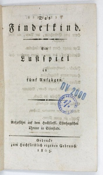 Das Findelkind. Ein Lustspiel in fünf Aufzügen. Aufgeführt auf dem Hochfürstl. Esterhazyschen Theater in Eisenstadt.