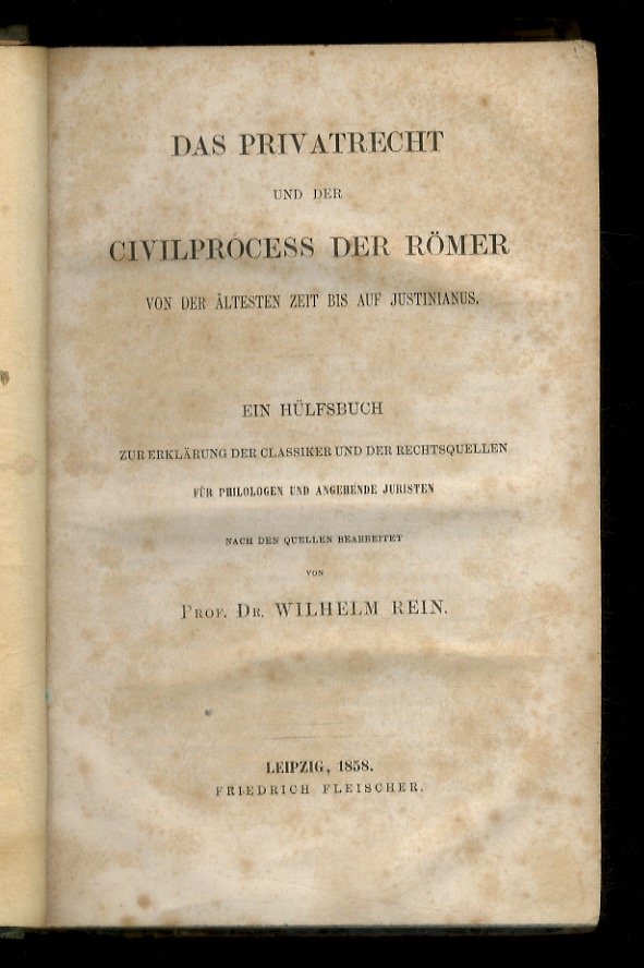 Das Privatrecht und der Civilprocess der Römer von der Ältesten Zeit bis auf Justinianus. Ein Hülfsbuch zur Erklärung der Classiker und der Rechtsquellen für Philologen und angehende Juristen. Nach den Quellen bearbeitet. | Libri antichi e moderni | Rein Wilhelm.