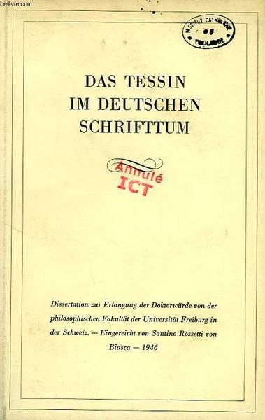 DAS TESSIN IM DEUTSCHEN SCHRIFTTUM | Libri antichi e moderni | Rossetti Santino