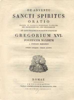 De Adventu Sancti Spiritus. Oratio habita in Sacello Pontificio Vaticano ad Sanctissimum Dominum Nostrum Gregorium XVI Pont. Max. a Stephano Marcarian.