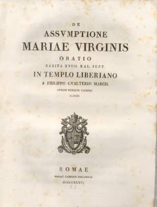 De Assumptione Maria Virginis. Oratio in Templo Liberiano a Philippo Gualterio Marchi. | Libri antichi e moderni | Anonimo.