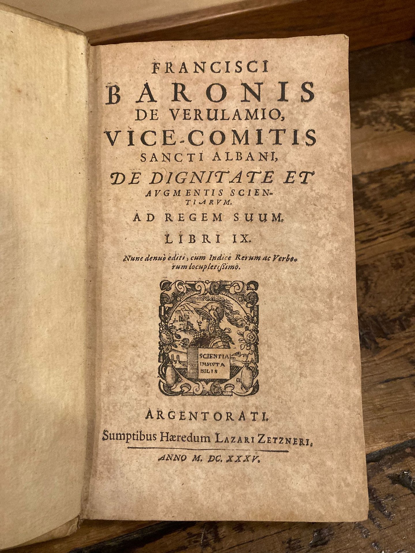 De Augmentis Scientiarum ad regem suum Libri IX. Nunc denuò editi, cum indice rerum ac verborum locupletissimo