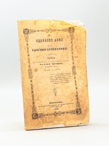 De Certains Abus de la Fonction Génératrice [ Edition originale ] | Libri antichi e moderni | Minvielle, E.-M.F. De Peyrehorade (Landes), Elève De L'Ecole Du, Service De Santé Militaire