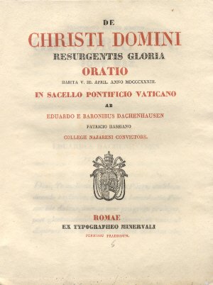 De Christi Domini Resurgentis Gloria. Oratio in Sacello Pontificio Vaticano ab Eduardo e Baronibus Dachenhausen.